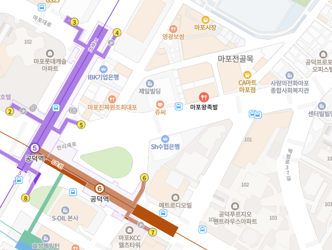 마포왕족발은 공덕역 5번출구에서 약 1~2분 정도 걸어나오면 볼 수 있는 시장에 위치해있다.