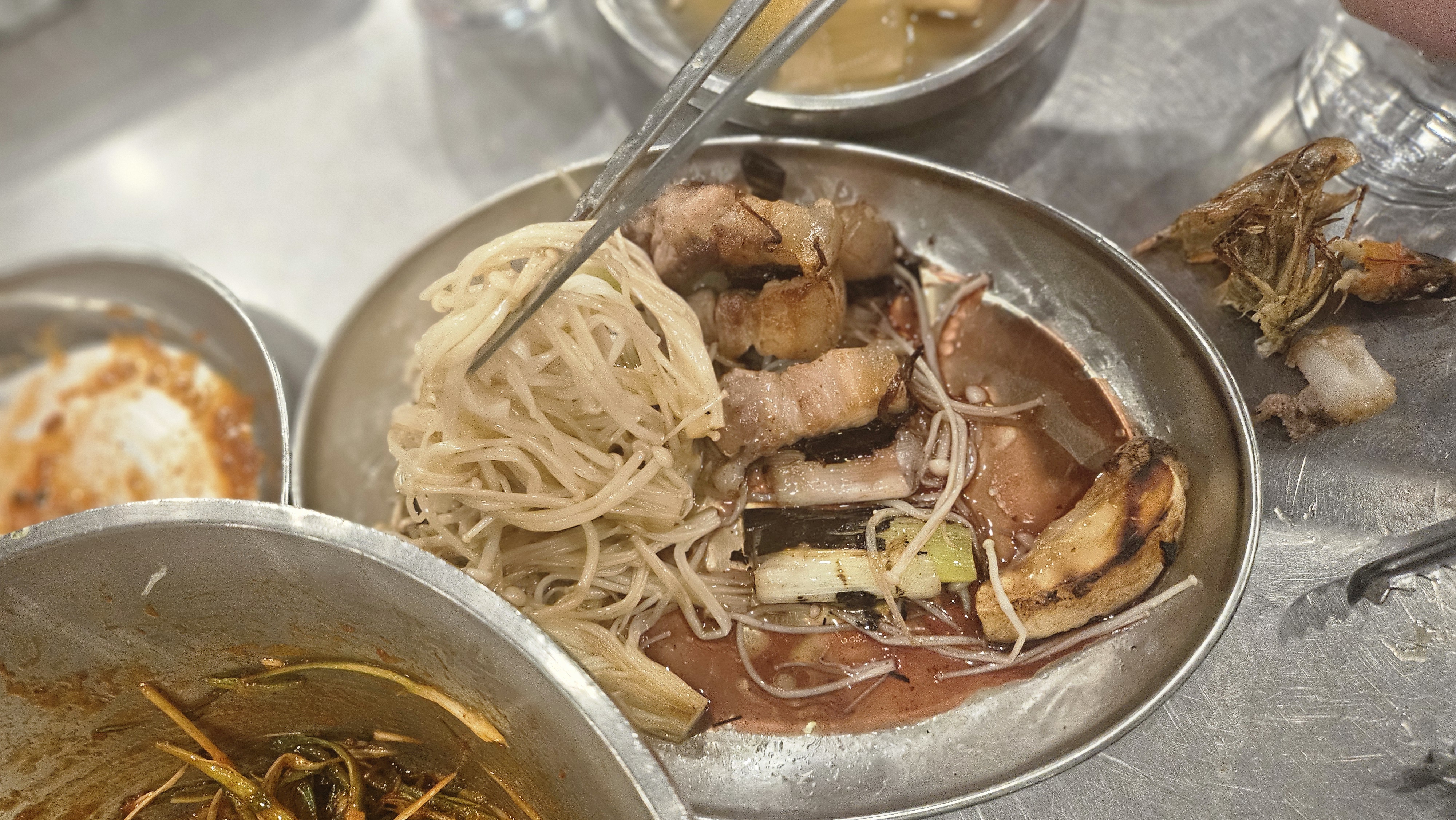 식당에서는 숯과 그릴을 제공해 주고, 그 위에 고객이 직접 불을 피워 음식을 구워 먹는 방식이다.