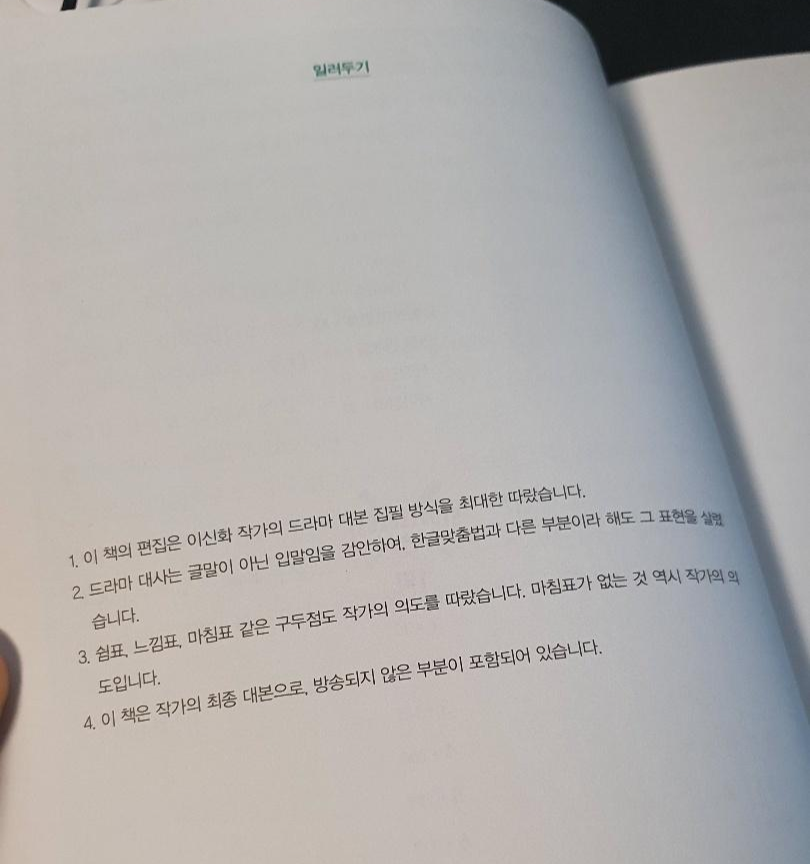 이 대본집은 작가의 최종 대본으로 드라마에 방송되지 않은 부분이 포함되어있다!