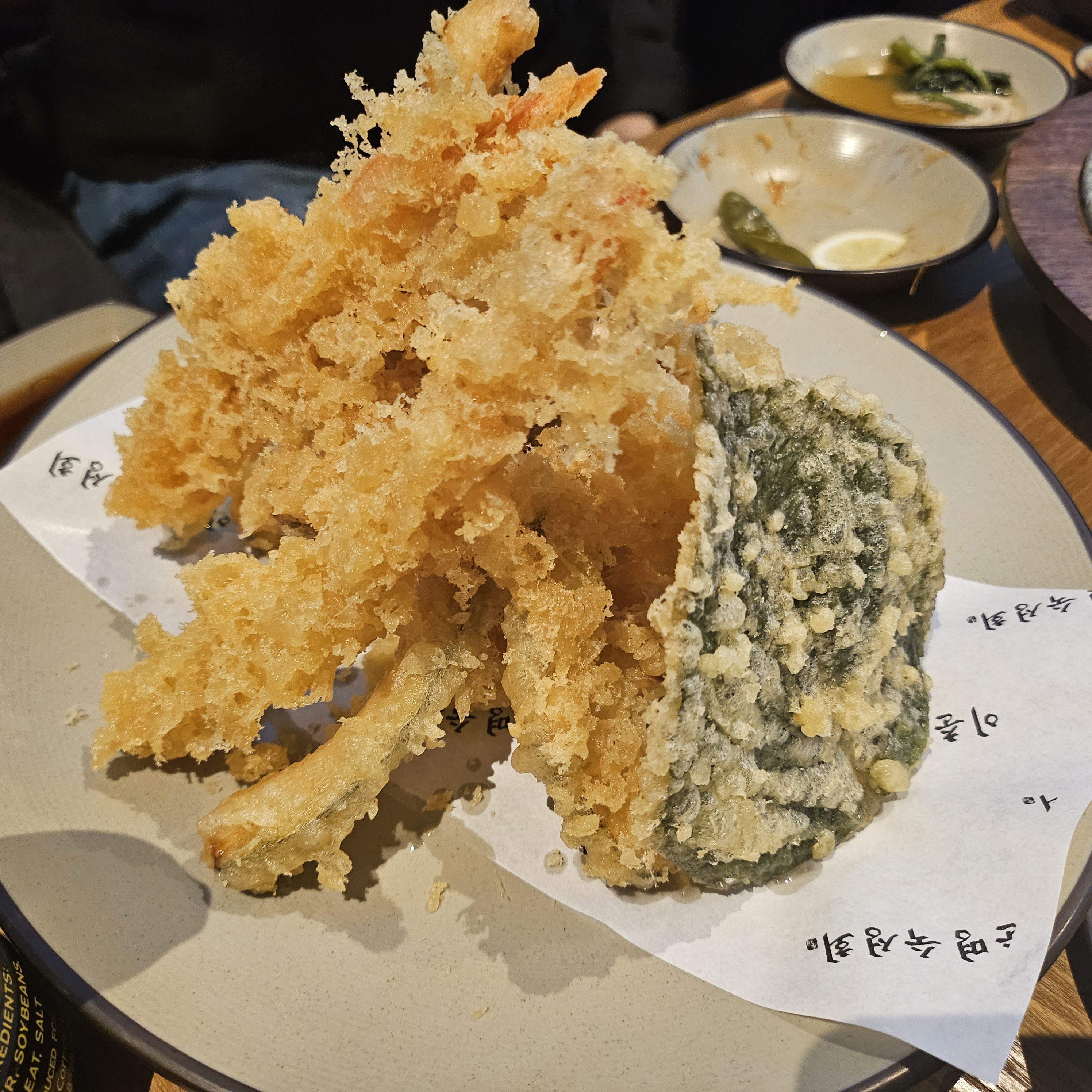 사이드메뉴인 모둠튀김과 마끼밥(김, 날치알, 무순,초밥)도 추천한다.