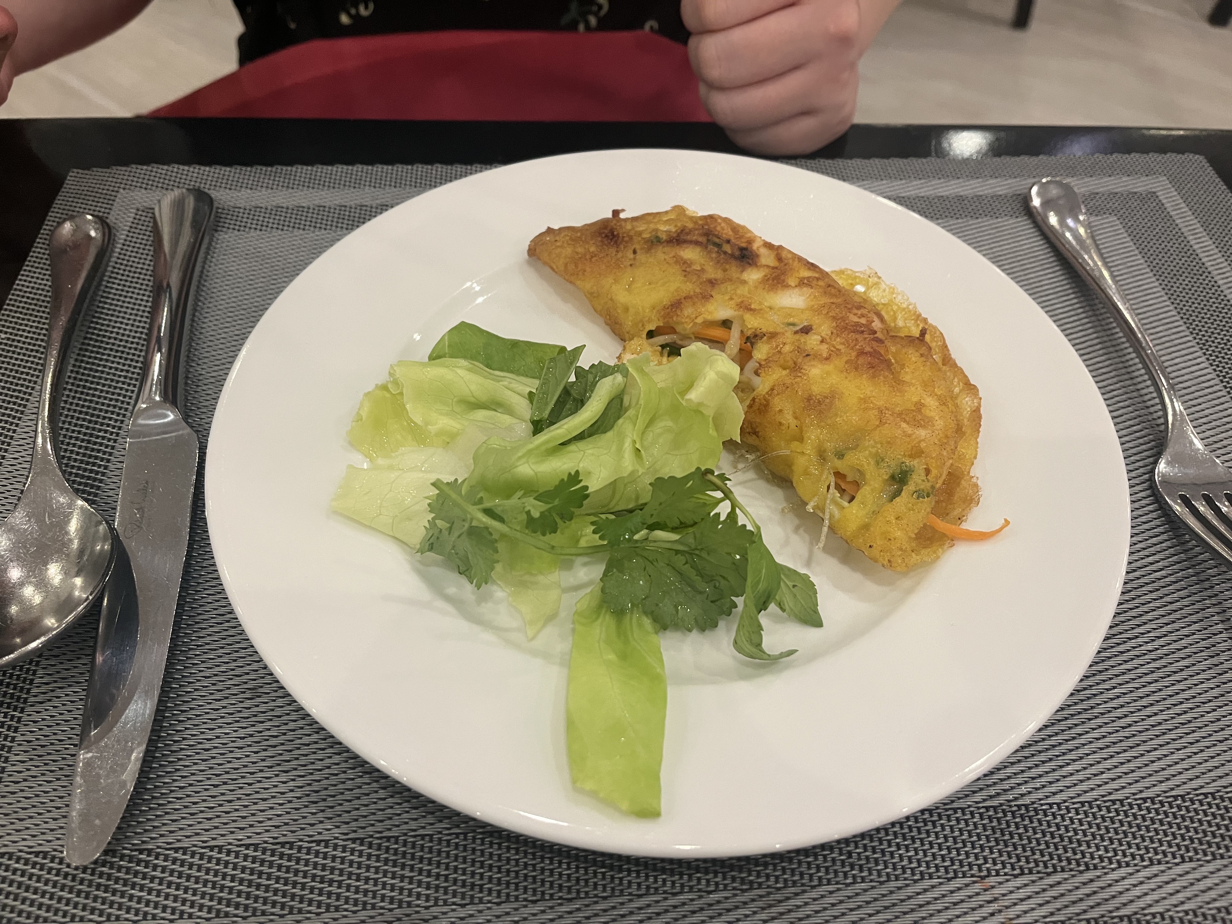 아!  풀보드 저녁식사에서 반쎄오를 먹었는데, 반쎄오는 정말 맛있었다! 내가 그동안 먹어본 반쎄오 중 제일 맛있다고 생각했다.