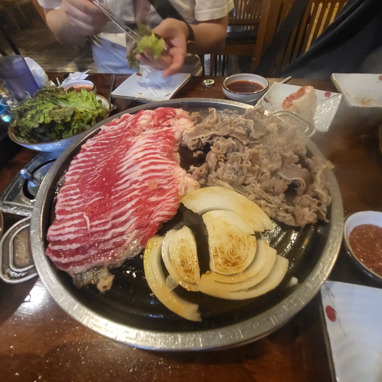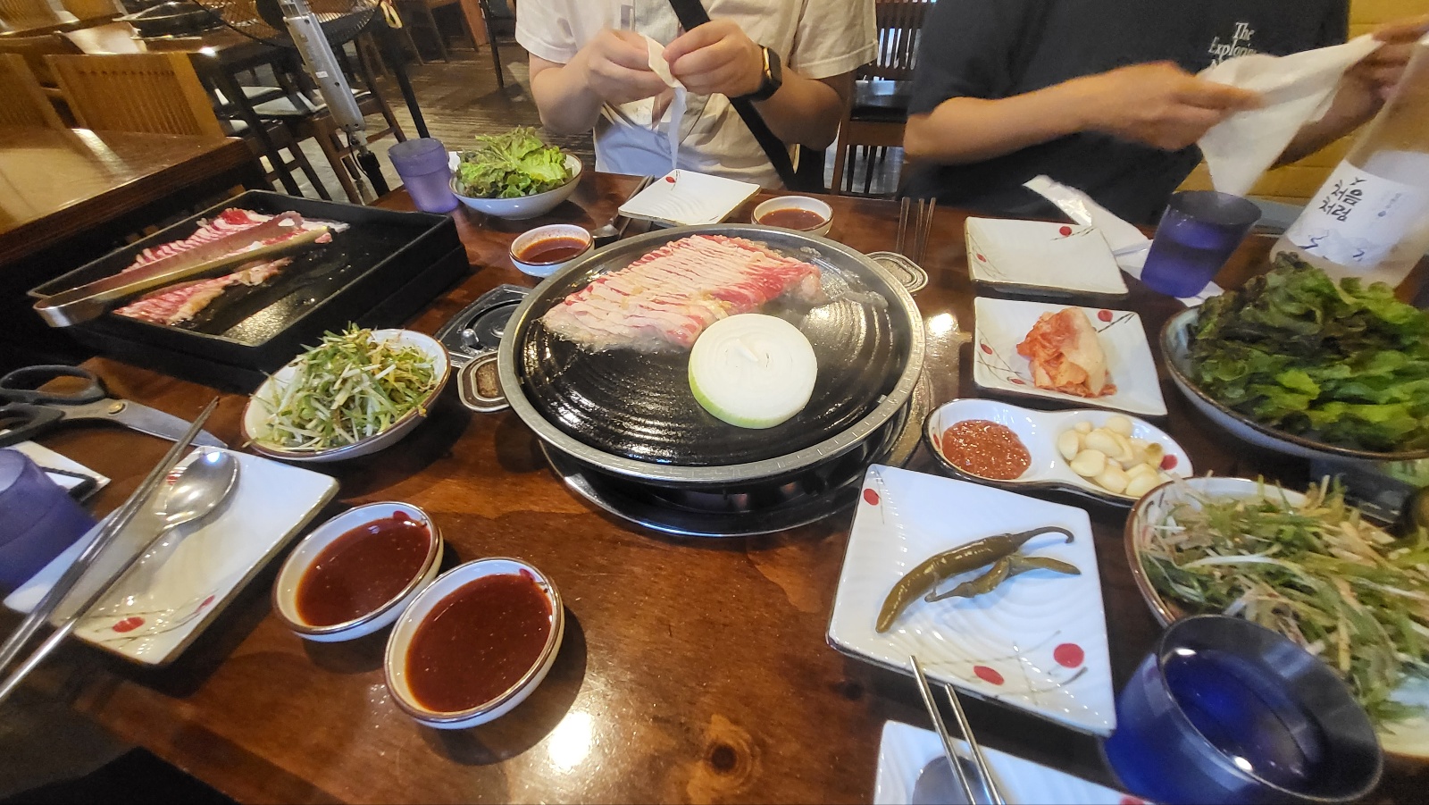 매장은 꽤 크고 창문이 열려있긴 하지만, 우삼겹이라는 것이 워낙 기름기가 많은 고기인지라 매장 바닥이 다소 미끄럽고 실내 환기가 잘 안되는 것 같았습니다. 하지만, 고깃집에서 고기냄새가 나는 것은 당연한 것일테니까요 ㅎㅅㅎ
